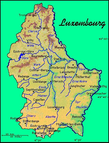 PHYSICAL MAP OF LUXEMBOURG