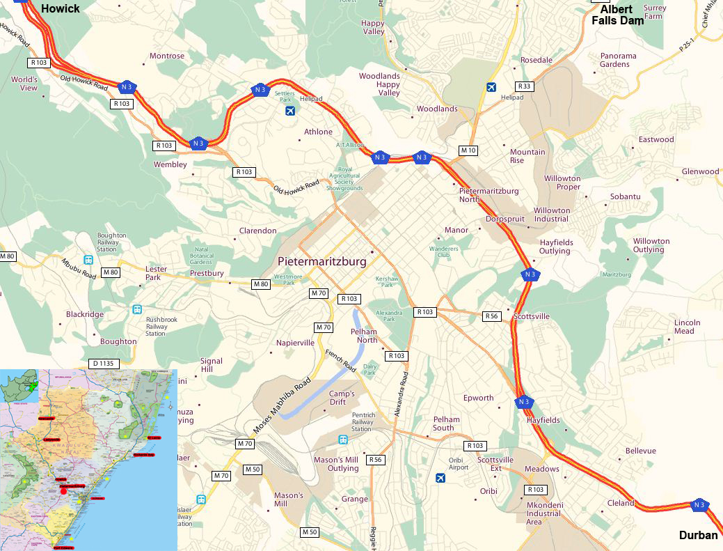 Navigate Pietermaritzburg Map, Pietermaritzburg city map, satellite images of Pietermaritzburg, Pietermaritzburg towns map, political map of Pietermaritzburg, driving directions and traffic maps.