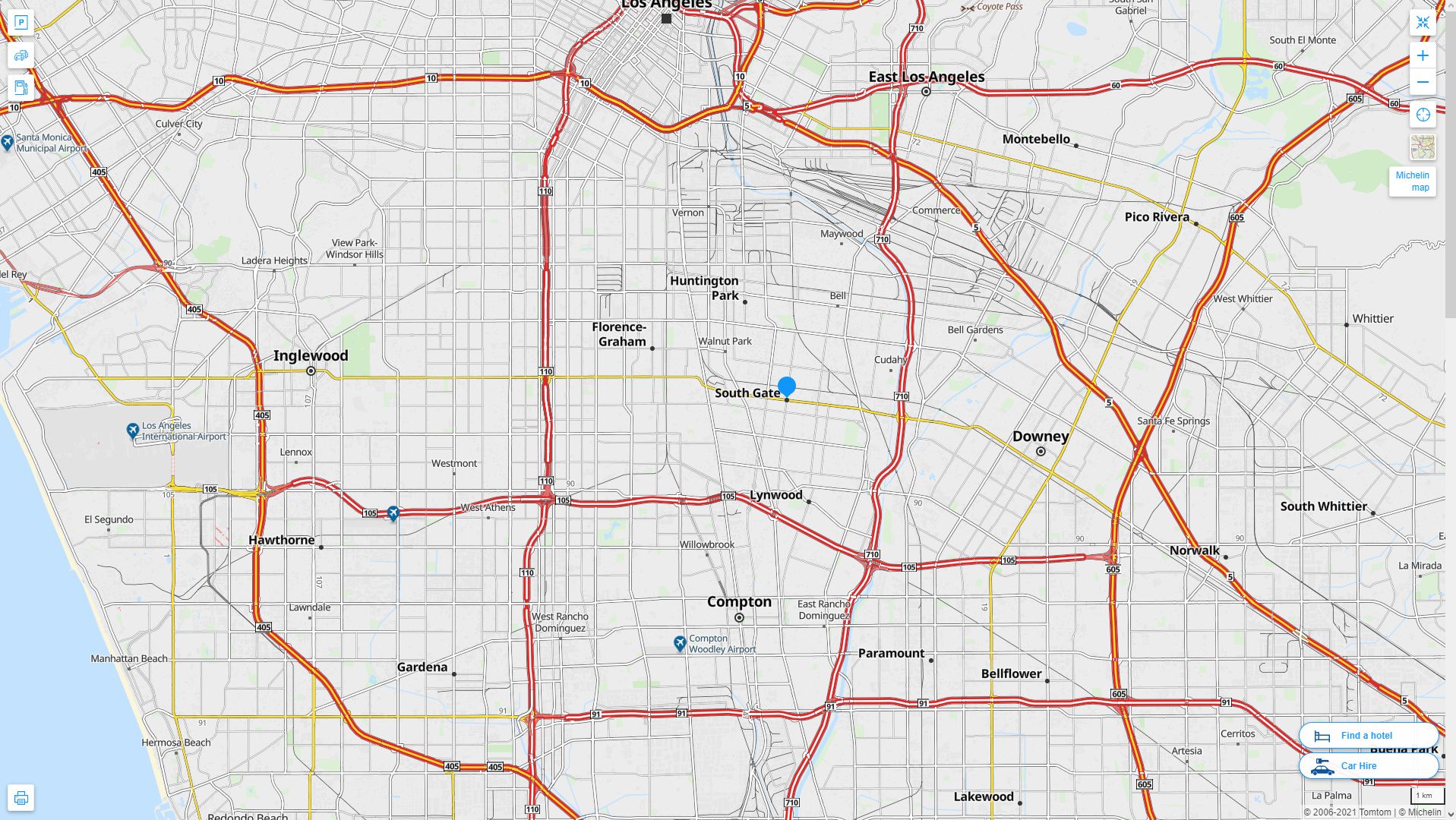 WorldMap1.com offers a collection of South Gate California map, google map, South Gate California atlas, political, physical, satellite view, country infos, cities map and more map of South Gate California.