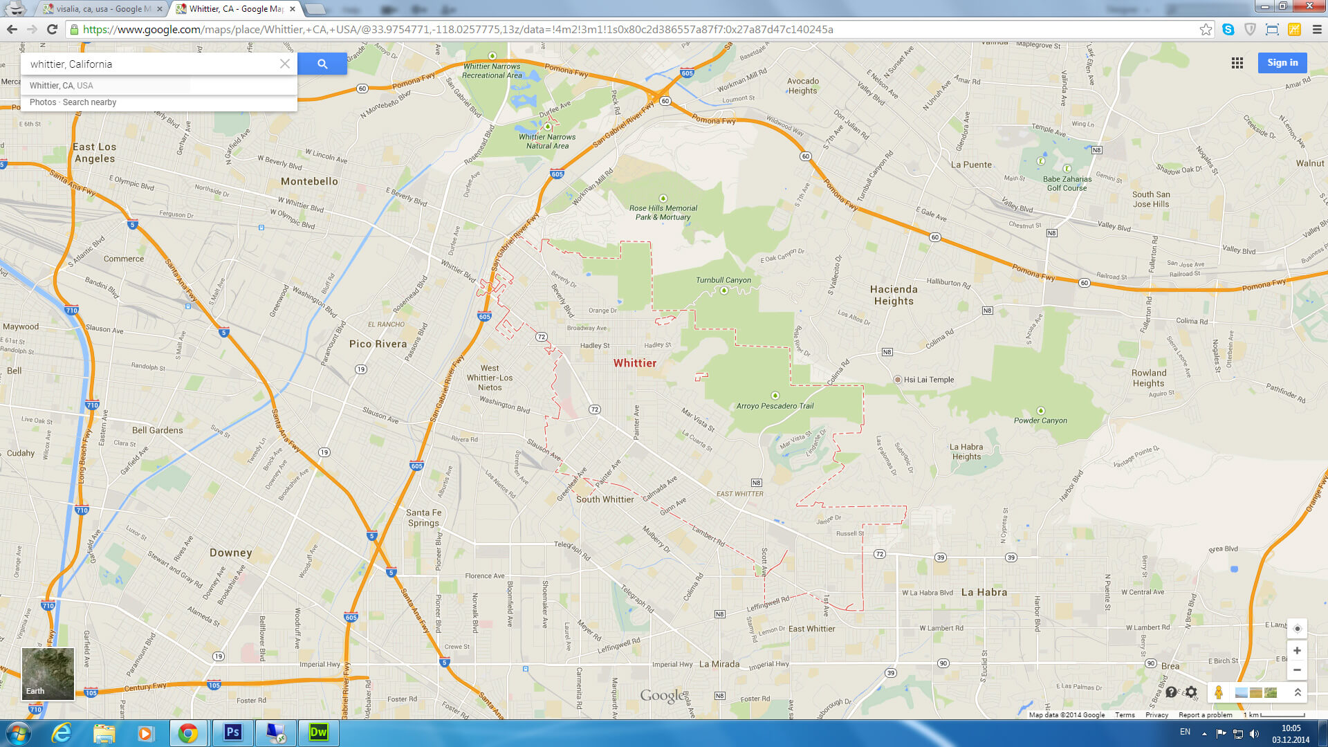 Navigate Whittier, California Map, map of Whittier, Whittier California regions map, Whittier satellite image, towns map, road map of Whittier.