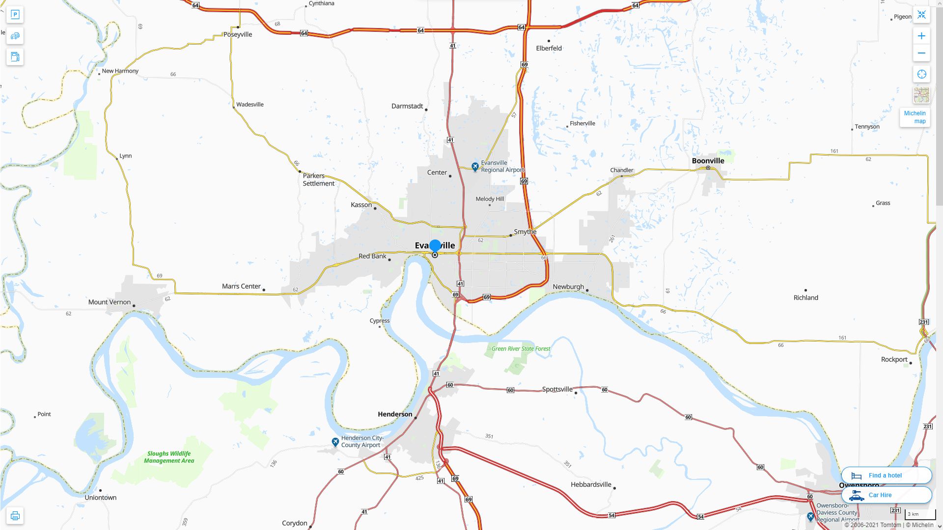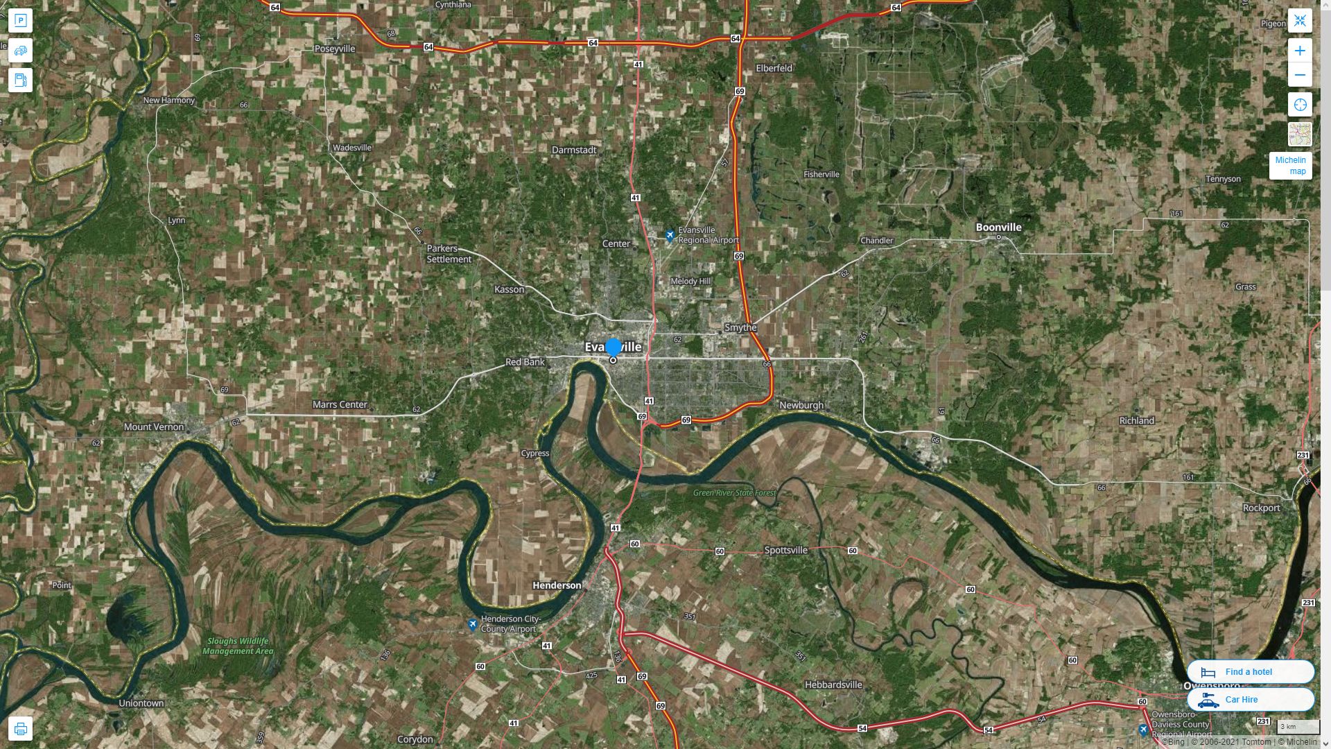 Navigate Evansville, Indiana Map, map of Evansville, Evansville Indiana regions map, Evansville satellite image, towns map, road map of Evansville.