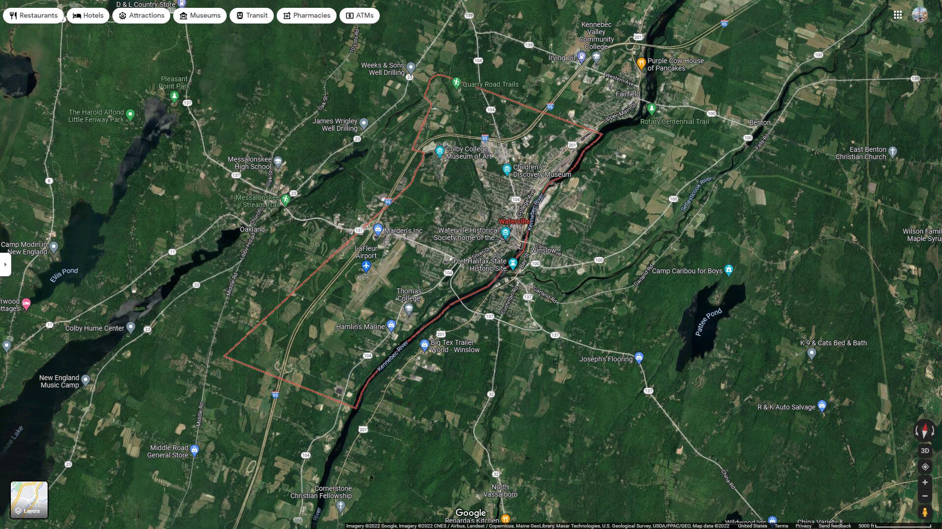 Navigate Waterville, Maine Map, map of Waterville, Waterville Maine regions map, Waterville satellite image, towns map, road map of Waterville.